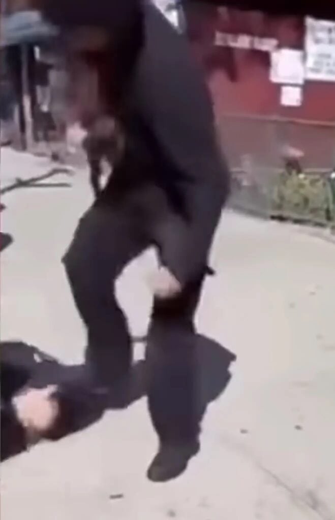 In the footage, the girl attempts to walk away from the confrontation, telling him to leave her alone. The boy then grabs her from behind, lifts her off the ground and slams her into the pavement. As she lies on the ground in pain, he stamps on her head before walking away.